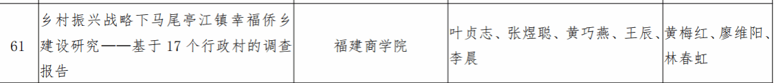 近日,第十六届“挑战杯”福建省大学生课外学术科技作品竞赛落下帷幕,bat365正版唯一官网项目《乡村振兴战略下马尾亭江镇幸福侨乡建设研究——基于 17 个行政村的调查报告》(项目成员:21级日语3班叶贞志、21级日语2班张煜聪、20级日语2班黄巧燕、20级日语1班王辰、20级商务英语2班李晨,指导老师:黄梅红、廖维阳、林春虹),在全省61所高校1343件作品中脱颖而出,荣获三等奖。据悉,这是bat365学生首次在“挑战杯”福建省大学生课外学术科技作品竞赛中获奖,实现了在“挑战杯”比赛上的重大突破。
