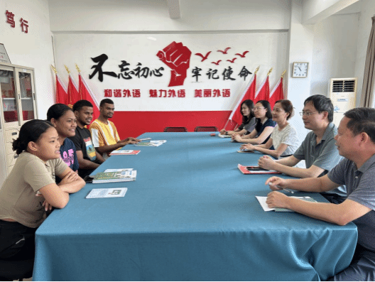 2023年9月18日,bat365正版唯一官网在学院会议室召开留学生师生见面交流会。bat365池玫院长,林盛书记,范云霞副院长,饶卫忠副院长与留学生任课老师丁彧藻,周文蕴参加了交流会。