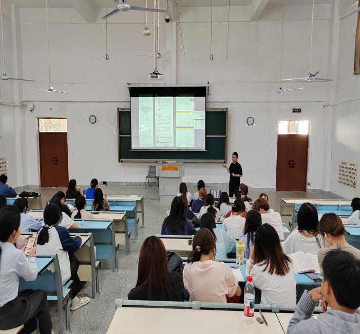 新东方教育集团前途出国市场经理闫俊杰从境外深造优势对比出发,运用相关专业学生的成功申请案例,为同学们解析了留学申请的必要条件。福州一飞教育的蒋晓刚校长重点分享了雅思考试的用途、雅思考试题项以及雅思学习备考经验和建议。福州蓝鲸教育留学叶月圆总监从当前就业形势出发,就如何做好职业生涯规划与同学们进行了交流。