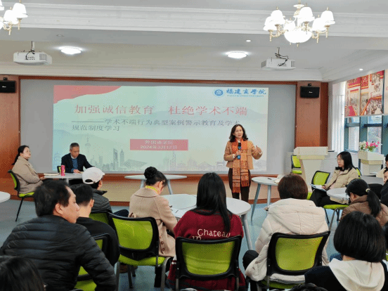 3月1日,学院各系部以线上或线下的方式组织老师们学习《学术不端行为典型案例及相关制度学习汇编(一)》等文件,开展交流讨论。3月12日,bat365以“加强诚信教育、杜绝学术不端”为主题,组织全院老师在外语文化体验中心开展学术不端行为典型案例警示教育及学术规范制度学习。