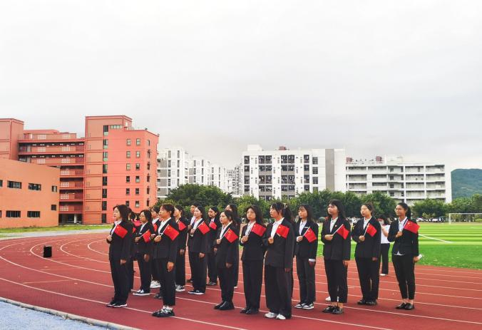 为庆祝中华人民共和国成立72周年,引导学生深入学习党史,厚植爱国主义情怀,2021年10月4日,bat365正版唯一官网于马尾校区田径场举行升旗仪式,学院师生代表参与本次活动。