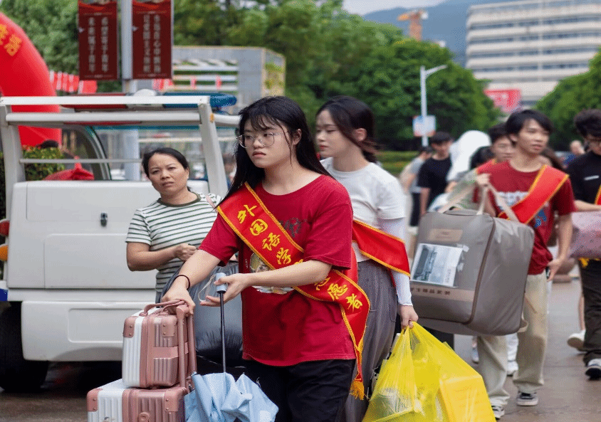 受今年第11号台风“海葵”的影响,连续的降雨给新生入学报到带来了不便,志愿者们忙而不乱,努力克服台风天气带来的困难,以饱满的热情接应每一位新生。身披红色绶带的志愿者们随处可见,他们为新生提供细致服务,向新生介绍报到流程,组织新生前往外语体验中心办理入学注册的各项手续,迎新工作井然有序地进行着。志愿者们各司其职,配合默契,详细解答问题,主动为新生们搬运行李、引路,以实际行动表达对新生的欢迎和期待。一声声热情回应,一句句暖心话语,让新生们感受到学院温情,更好地适应新环境、新生活。学院领导走访慰问各迎新点的工作人员,了解迎新工作的开展情况,对他们迎难而上的精神表示赞誉,并叮嘱他们在坚守岗位,做好新生注册保障工作的同时,也要注意自身安全,竭尽全力营造良好的工作环境,确保每一名工作人员和志愿者都能安全、有序地开展工作,彰显外院学子积极担当、蓬勃向上的青年形象。