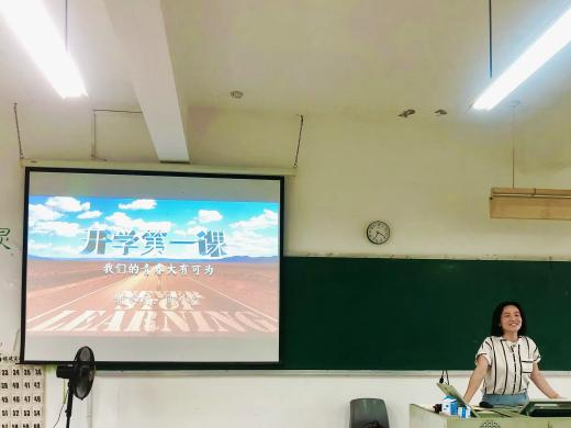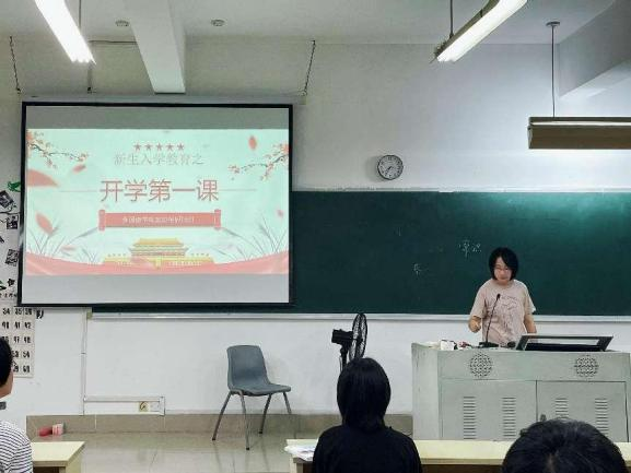 图1-1辅导员余屹凌老师为2023级翻译专业开展“开学第一课”主题班会