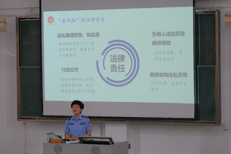 薛丹果警长深入浅出地讲述海南离岛免税“套代购”走私行为的特征、套路、辨别方法、危害后果和防范举措等相关知识,极大提高青年学生的风险防范意识和辨别能力,避免落入离岛免税“套代购”走私陷阱。