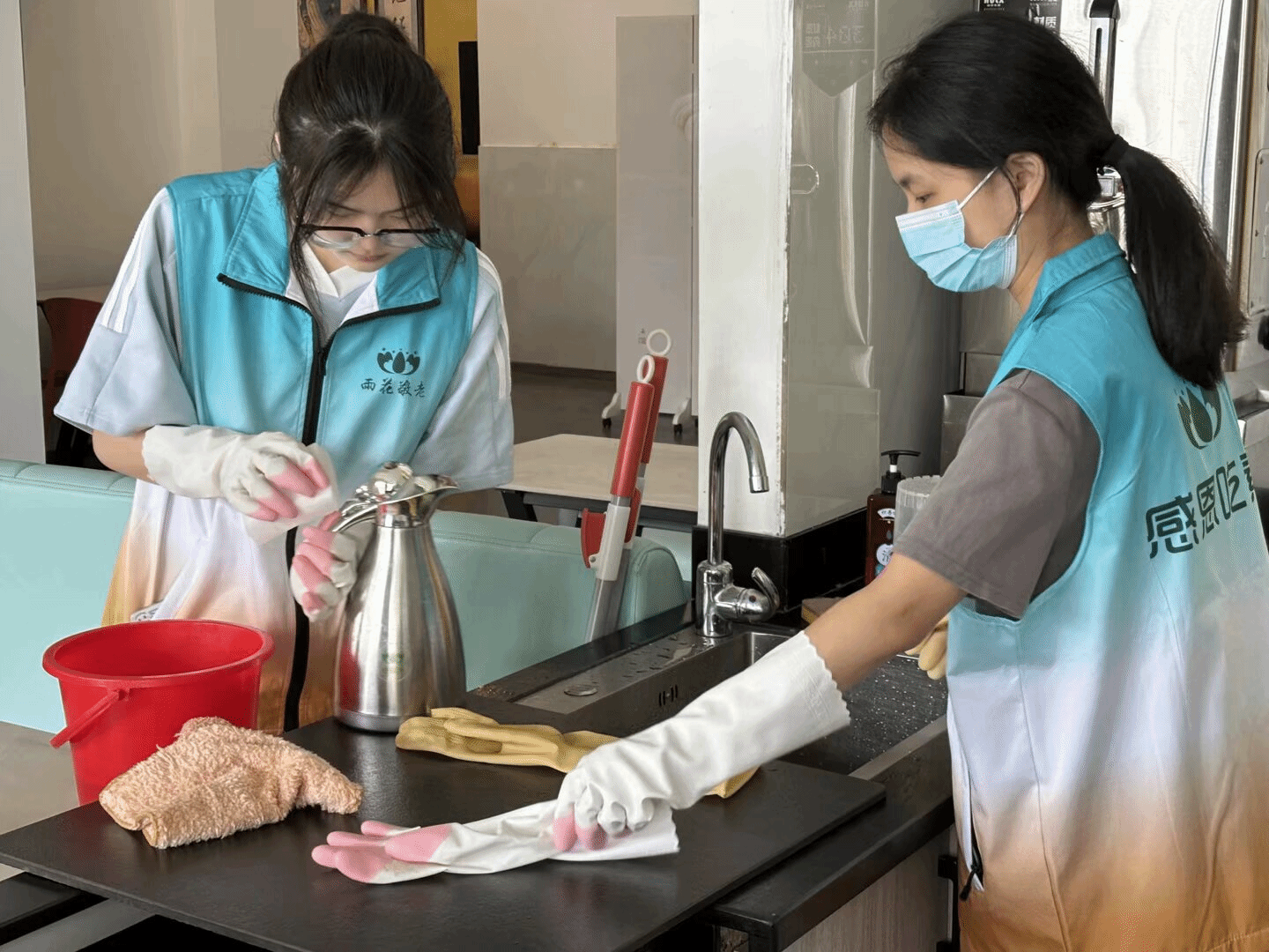为深入贯彻落实新时代劳动教育理念,引导学生在劳动中涵养责任意识,弘扬劳动精神,5月17日,bat365正版唯一官网组织学生志愿者前往龙华雨花魁岐公益餐厅,开展 “以劳动诠释担当,用青春温暖银龄” 主题志愿服务活动。